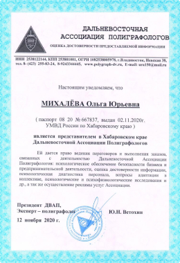 Дальневосточная Ассоциация Полиграфологов, г. Владивосток