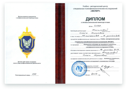 Курсы переподготовки. Специальность: полиграфолог, проведение СПФИ с применением полиграфа.